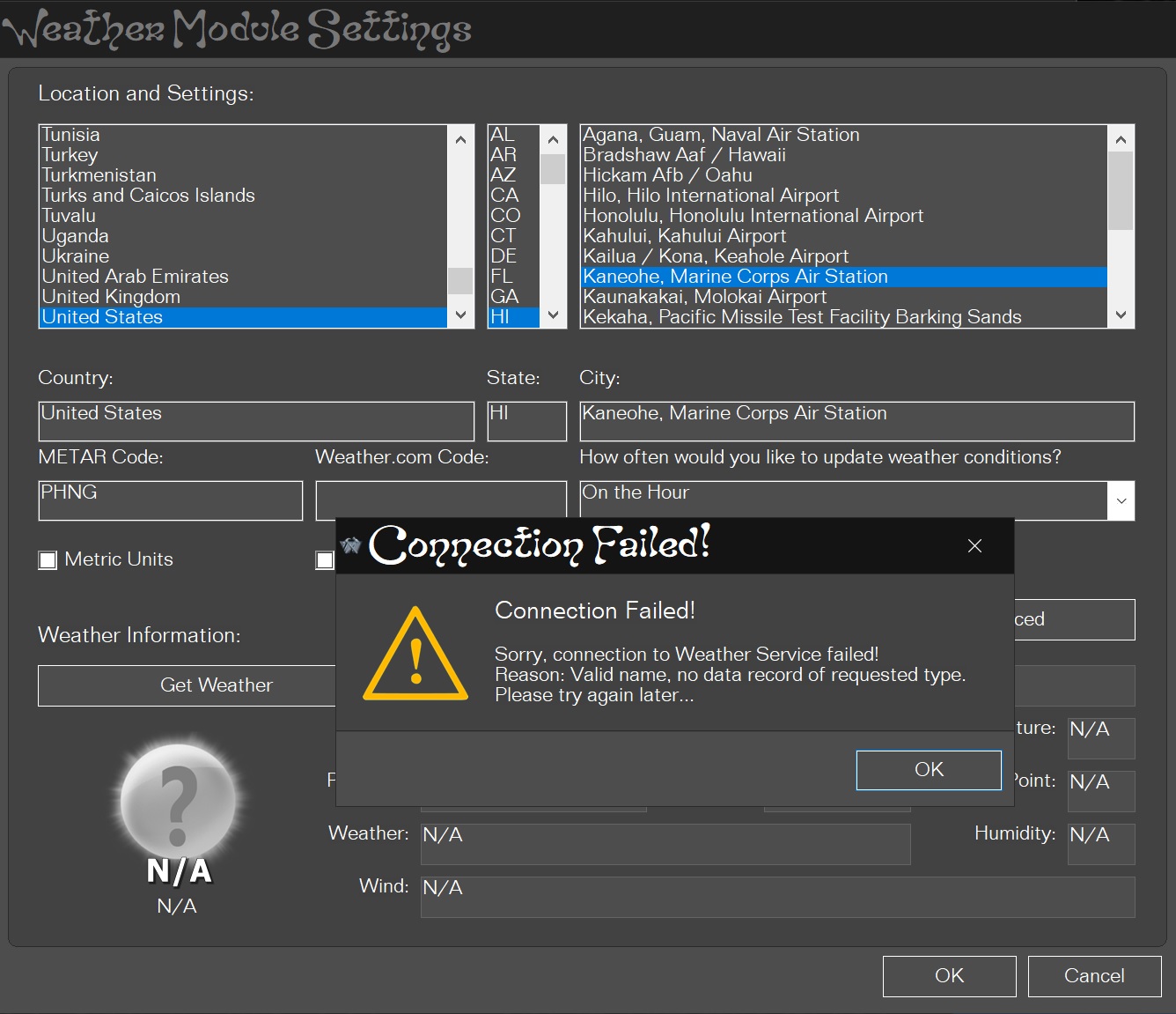 Post subject: Weather Module stopped working a few days ago.