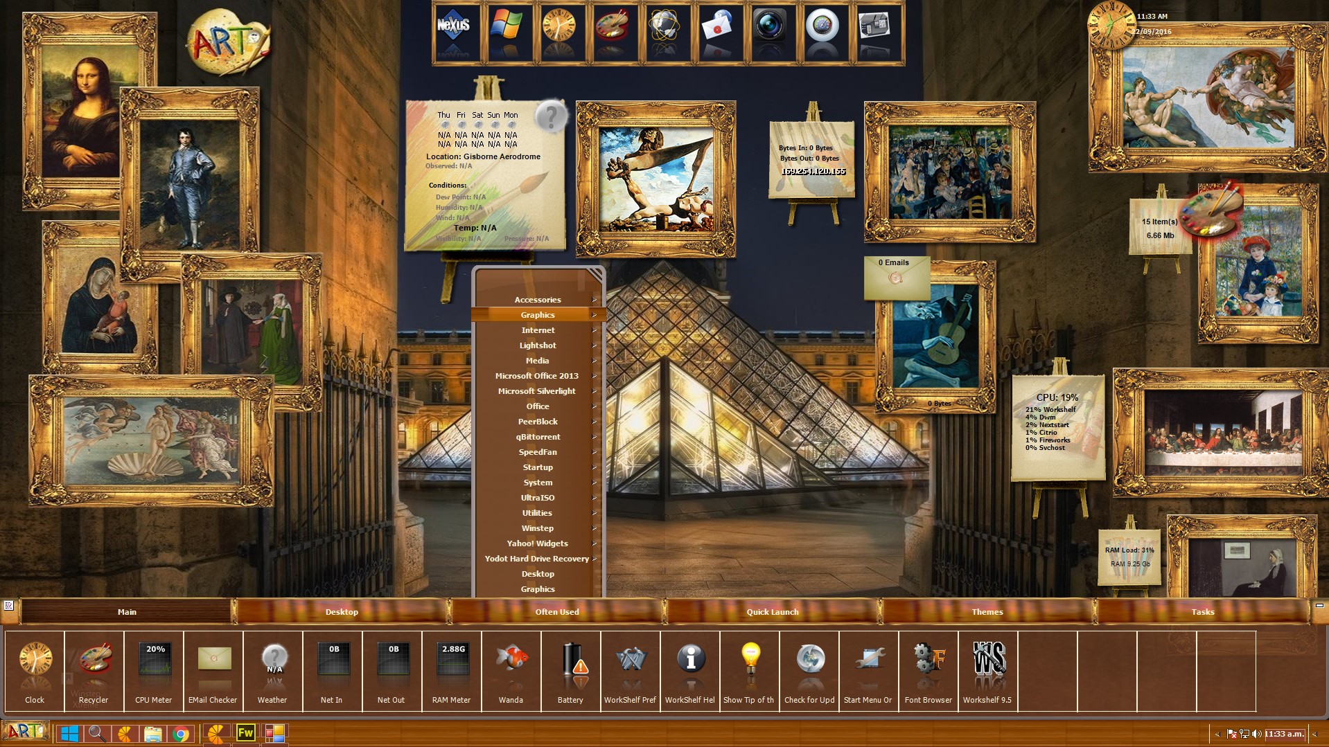 Ok Pico whatshisname did a theme and I used none of his graphics at all - zero. The winstep 9.5 menu editing builder I could not find so I removed ALL of his images, all of the lot manually, resized, manually moved things etc etc in config files - TOTALLY did my own graphics.I even resized many docklets and manually adjusted pixel locations in the config files.