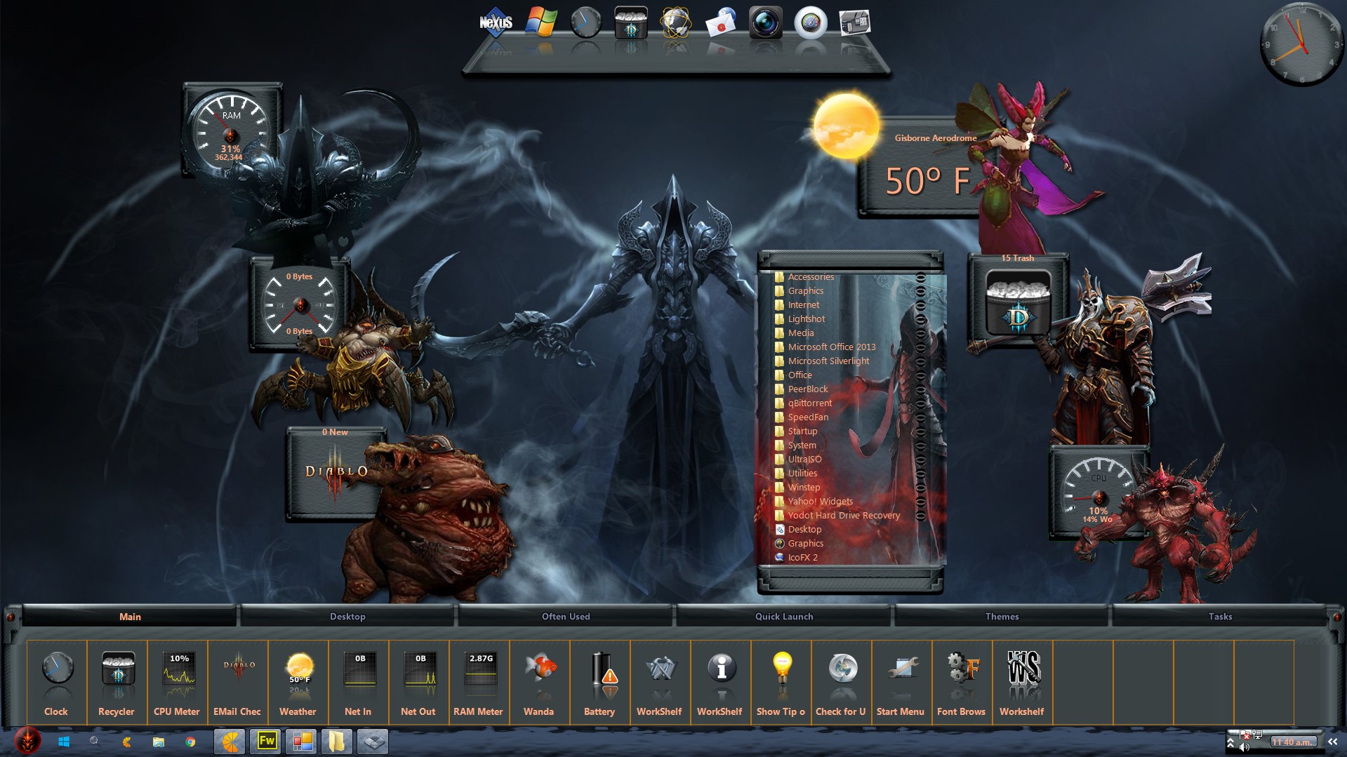And for the Gamers - now fixed complete with Diablo head menu button and tthe head [tiny] in all the centers of the docks+ logo plus a few of the main bosses rather than the heroes.