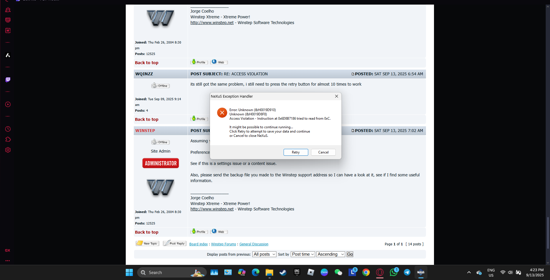 I suggest you try Nexus or even Xtreme on a different (e.g.; a friend's) computer to a realize the problem is not on the Winstep application itself but with something specific to your system.