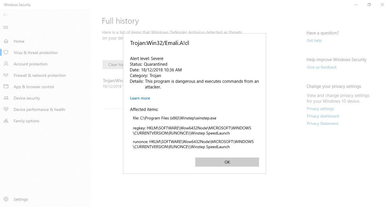 Post subject: Windows Defender winstep.exe false positive on Windows 10