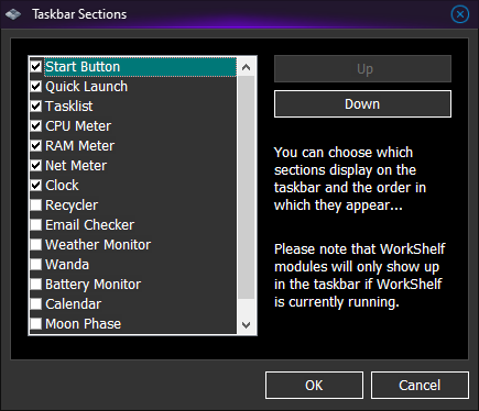 • See screenshots below. The Taskbar Sections have the items in the same order that I'm showing them. The right end of my Taskbar is shown in the last screenshot and shows all the items after "Tasklist" in the Taskbar Sections window.