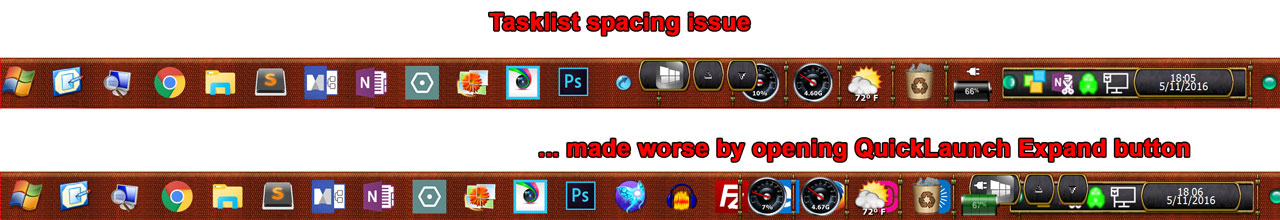 So, for instance, if a collapsed QL area fits but not when expanded, the icons will be shown at their original sizes when the QL area is collapsed, but will be automatically reduced in size when the QL area is expanded, so everything fits in the taskbar.
