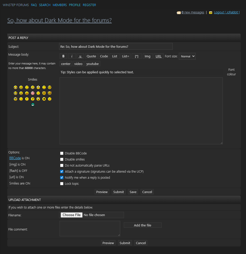 Post subject: Re: So, how about Dark Mode for the forums?